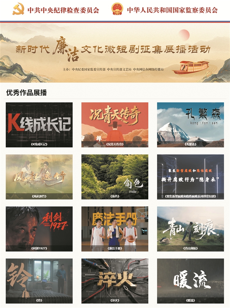 春节期间,一批从中央纪委国家监委宣传部、中央宣传部文艺局、中央网信办网络传播局联合举办的新时代廉洁文化微短剧征集展播活动中遴选而出的精品微短剧在中央纪委国家监委网站等17家网络平台进行集中展播,引发网友关注、讨论。这些宣传反腐成效、弘扬清风正气、反映人民心声的精品力作,着力讲好正风肃纪反腐故事,以正面声音、主流价值、时代新风取得了良好传播效果。