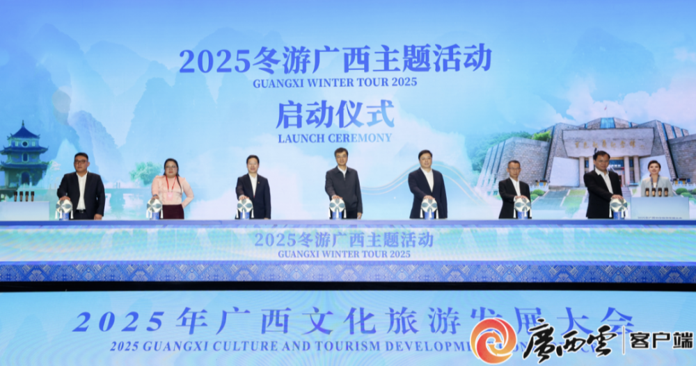 11月24日,自治区党委、政府在百色市召开2025年广西文化旅游发展大会。自治区党委书记、自治区人大常委会主任陈刚,自治区主席韦韬同与会嘉宾共同启动“2025广西旅游年·冬游广西”主题活动。广西云-广西日报记者 何学俏 摄