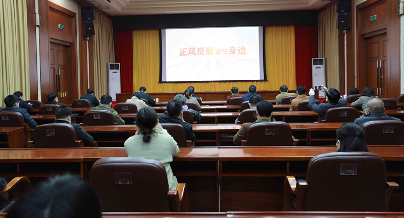 图为百色市纪委监委组织集中观看《正风反腐就在身边》现场