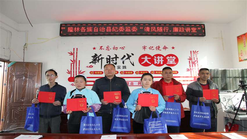 为切实提高基层党员干部的纪律规矩意识,以优良的作风更好地服务农村,保障乡村振兴战略的实施。隆林纪委监委特别注重警示教育,充分利用廉政教育基地,努力做好案件查处后半篇文章。隆林廉政教育基地于2020年10月建成并投入使用,今年开春,已陆续接待包括新任村干部在内的党员干部500余人/次。基地以图文墙体、多媒体数字、情景模拟等多形式展示我党廉政建设历程思路、廉洁典故语录、领导教诲以及违纪违法典型案例、新时代先进人物事迹,从教育和警示两个方面对党员干部进行廉洁教育。