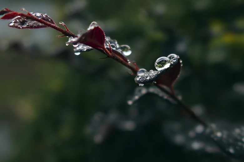 11月,孟冬之月,水始冰、地始冻。雨滴落在枝叶上,成了一颗颗晶盈剔透的珠子,久久不散。